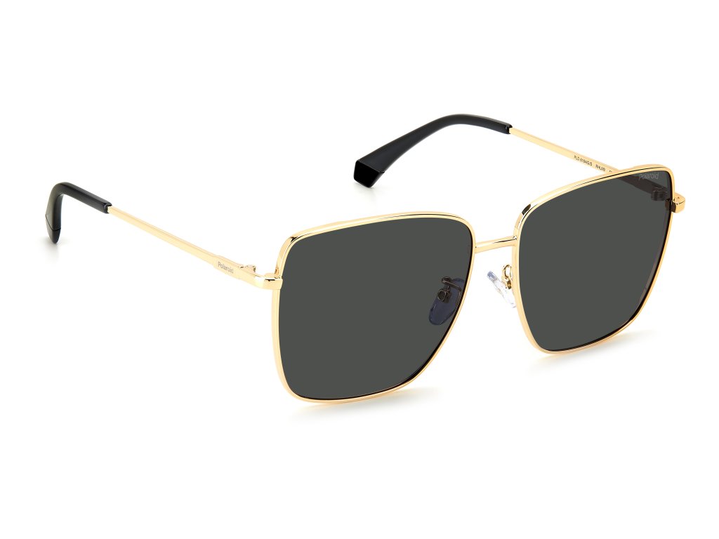 SLNEČNÉ OKULIARE POLAROID WOMEN PLD6164GSRHLM (Šošovky/Mostík/Tempel) 59/15/145 mm). Materiál: MATERIÁL: KOV. Farba: Zlatá a čierna. Rozmery (šošovka/mostík/tempor): 1,5 mm: 59/15/145 mm. ŠEDÁ. Rafinovaný tvar týchto dámskych slnečných okuliarov spája základné línie s popovou osobnosťou značky Polaroid. Nosníky a predná časť sú z trvanlivej, ale ľahkej nehrdzavejúcej ocele. Farebné koncovky polarizovaných šošoviek zdobí ar