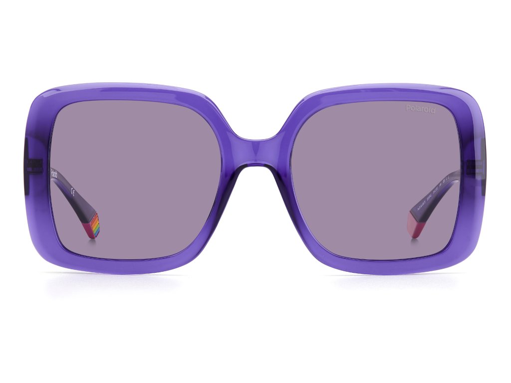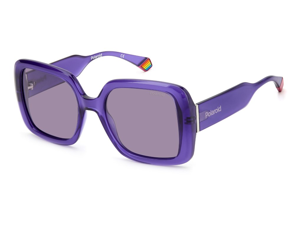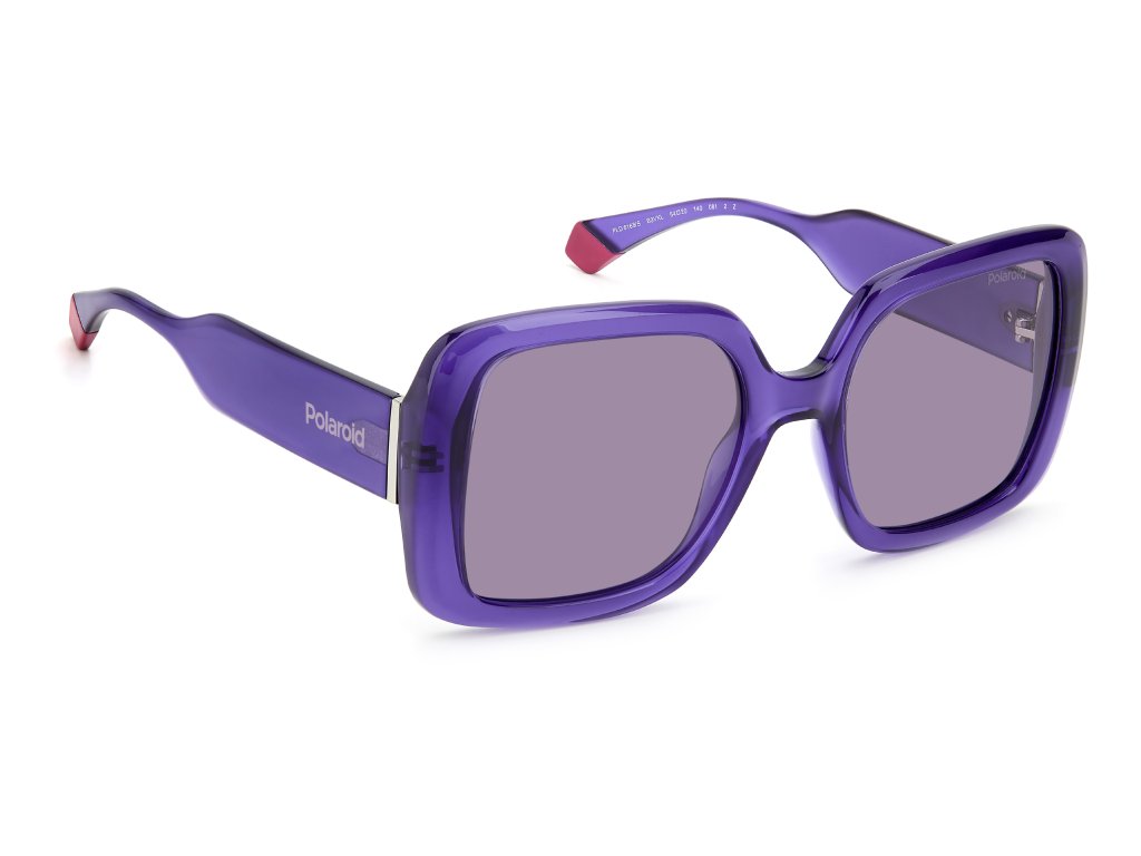 SLNEČNÉ OKULIARE POLAROID WOMEN PLD6168SB3VKL (Šošovky/Mostík/Tempel) 54/20/140 mm). Materiál: MATERIÁL: PLAST. Farba: FIALOVÁ. Rozmery (šošovka/mostík/tempor): 54/20/140 mm. Fialové polarizované. Tieto mierne retro dámske slnečné okuliare sú plné osobnosti vďaka veľkej hranatej prednej časti. Veľké extra nosníky sa zužujú okolo uší a nesú prvok ikonickej dúhovky v koncovkách. Povrchová úprava