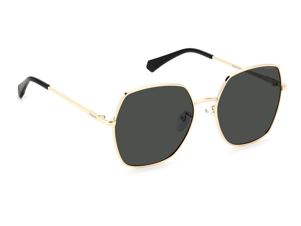 SLNEČNÉ OKULIARE POLAROID WOMEN PLD6178GSRHLM (Šošovky/Mostík/Tempel) 58/18/145 mm). Materiál: MATERIÁL: NEHRDZAVEJÚCA OCEĽ. Farba: čierne zlato. Rozmery (šošovka/mostík/tempor): 1,5 mm: 58/18/145 mm. Polarizovaná šedá farba. Tieto dámske slnečné okuliare majú jedinečný štýl. Osemuholníkový nosník je kovový, rovnako ako tyčinky, ktoré sú doplnené pohodlnými polykarbonátovými koncovkami. Charakteristický prvok Polaroid ich preniká farebnou poznámkou: prvky