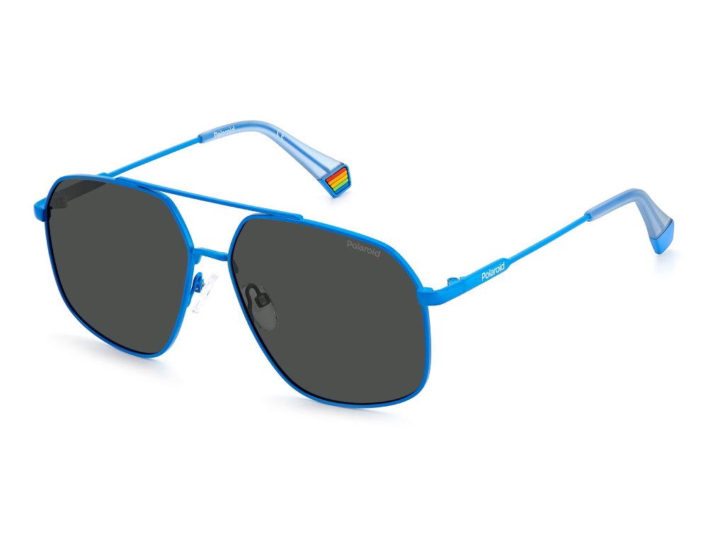 SLNEČNÉ OKULIARE POLAROID Unisex PLD6173SMVUM9 (Šošovky/Mostík/Tempel) 58/14/140 mm). Materiál: MATERIÁL: NEHRDZAVEJÚCA OCEĽ. Farba: MODRÁ. Rozmery (šošovka/mostík/tempor): 1,5 mm: 58/14/140 mm. Polarizovaná sivá farba. Šesťuholníková predná časť s dvojitým mostíkom je len jednou z charakteristík, ktorými sú tieto unisex slnečné okuliare jedinečné: ľahká, štíhla kovová konštrukcia a ikonický dúhový prvok hlásajú svetu, že sú nepochybne polaroidové.