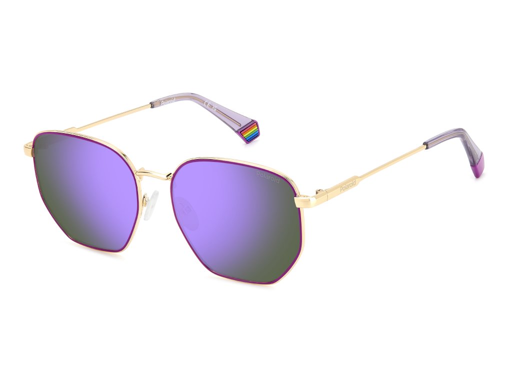 SLNEČNÉ OKULIARE POLAROID UNISEX PLD6214SXS9E (Šošovky/Mostík/Tempel) 56/17/145 mm). Materiál: MATERIÁL: NEHRDZAVEJÚCA OCEĽ. Farba: FARBA: ZLATÁ. Rozmery (šošovky/mostík/tempor): ZLATO: 56/17/145 mm. FIALOVÁ.